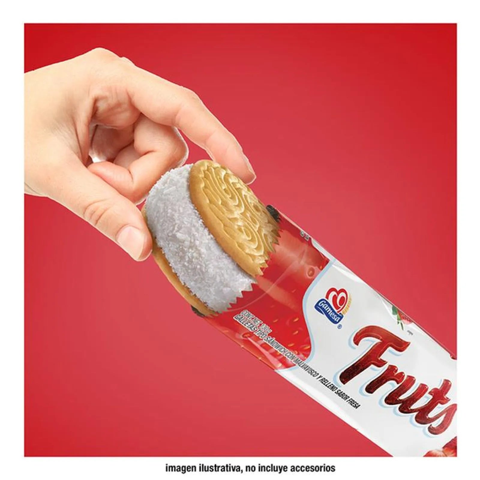 Fruity crunch with Gamesa Fruts Cookies in a 5 oz pack. Crisp cookies with bits of real fruit.