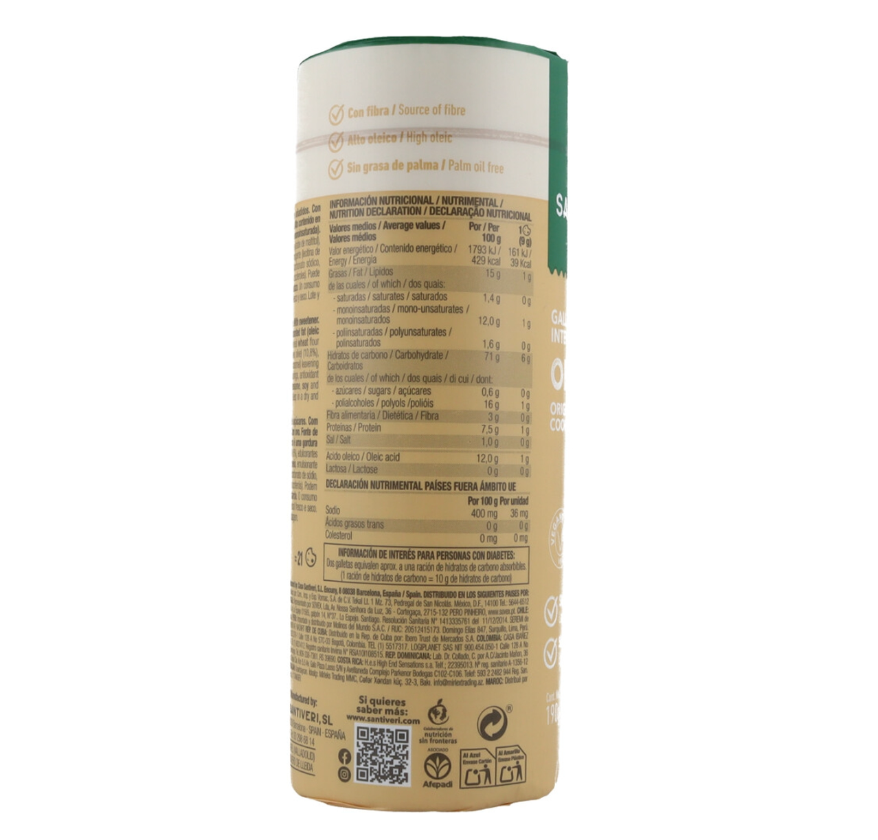 Discover a guilt-free treat that doesn’t sacrifice flavor — Santiveri Original Whole Grain Cookies are gluten-free, high in fiber, and crafted with wholesome ingredientes for those who care about their well-being sin dejar lo rico.