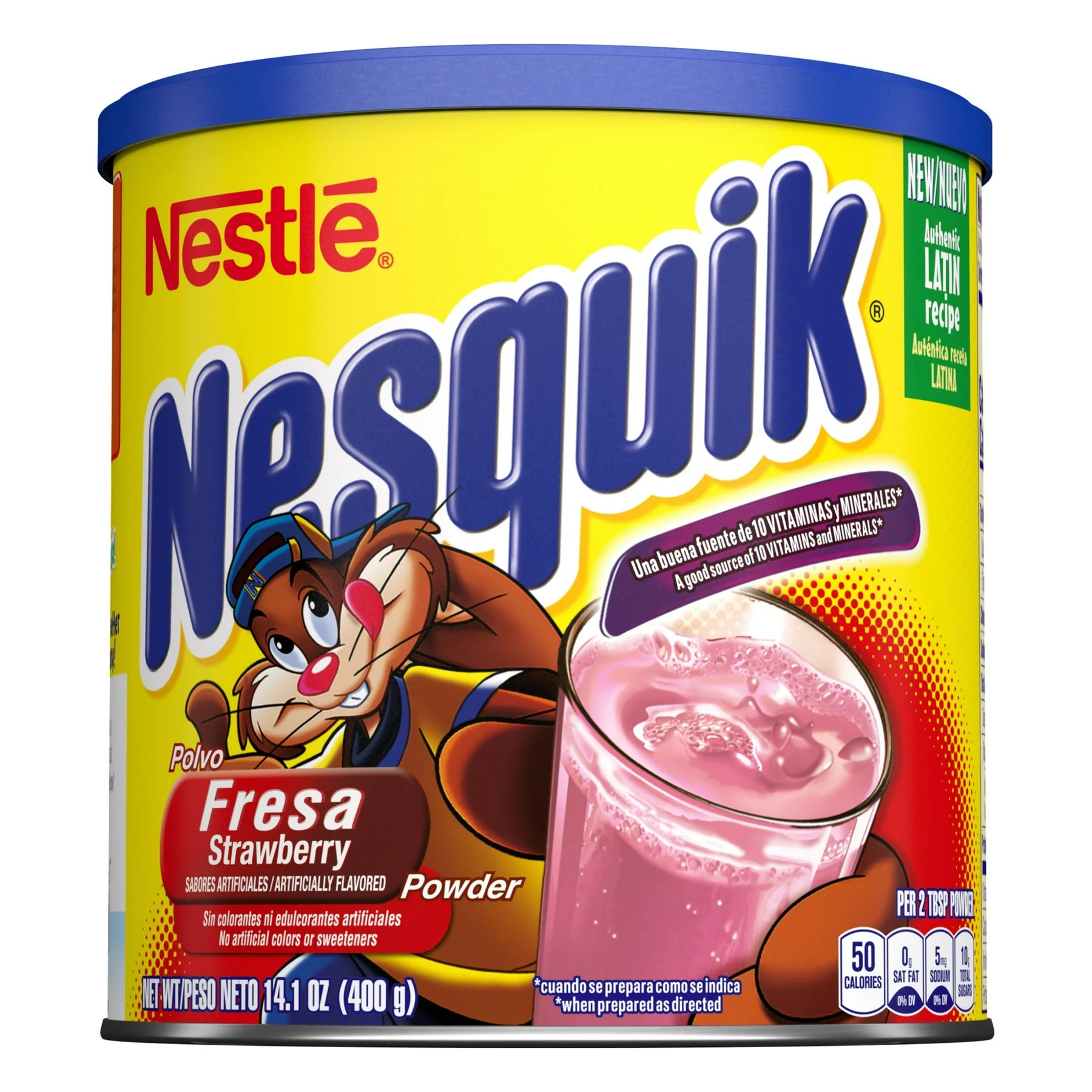Turn milk into a fresa-flavored fiesta with Nestlé Nesquik Strawberry, the classic powder mix that brings childhood memories and big smiles in every sip. Con solo una cucharada, tu vaso de leche se transforma en una bebida deliciosa, con ese sabor dulce y cremosito que encanta a chicos y grandes.